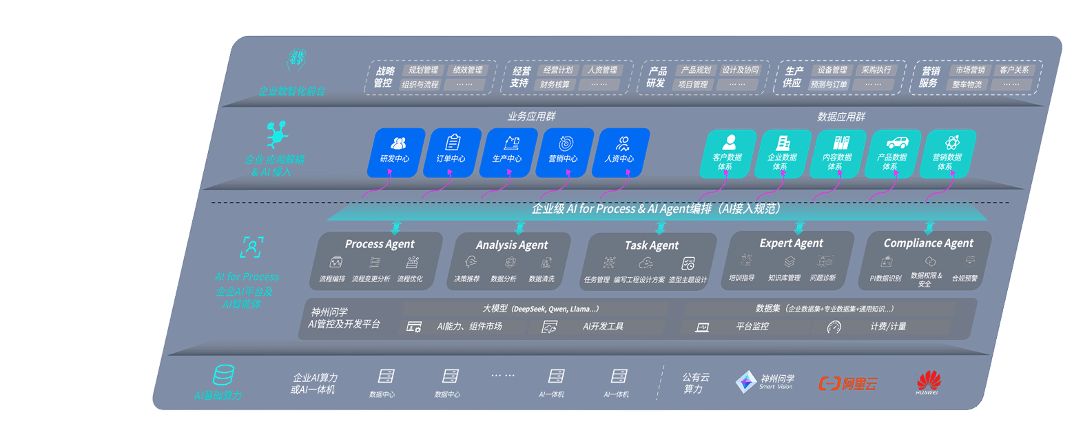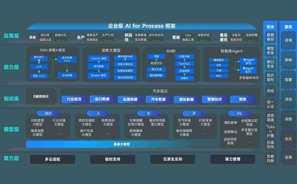 EBpay问学智车解决方案是一套基于AI技术的汽车行业智能化系统,,覆盖从底层算力到顶层AI应用的全栈方案。。。。方案由算力层、、模型层和应用层组成:算力层,,方案支持多种一体机配置,,具备云端灵活部署、、多云适配以及动态优化计算资源的能力;模型层,,,,EBpay问学平台版提供了企业级AI应用一站式构建与管理平台,,支持基于后训练强化技术的汽车企业专属模型的训练、、、、评测和运营;应用层,,EBpay问学DeepSeek版提供包括超级员工、、智能招采、、、、智能营销、、智能客服、、AI for BI等一系列解决方案,,,,可助力汽车行业实现数字化转型,,,让管理更智能、、、响应更敏捷。。。。