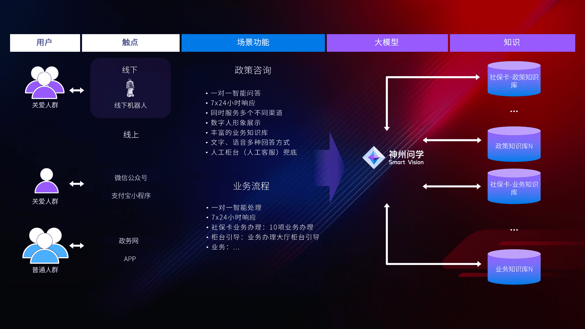 • 线上线下全覆盖:线上提供微信公众号、、、支付宝小程序、、、、政务网、、、app多种渠道,,,与线下机器人形成完整服务体系。。。。
